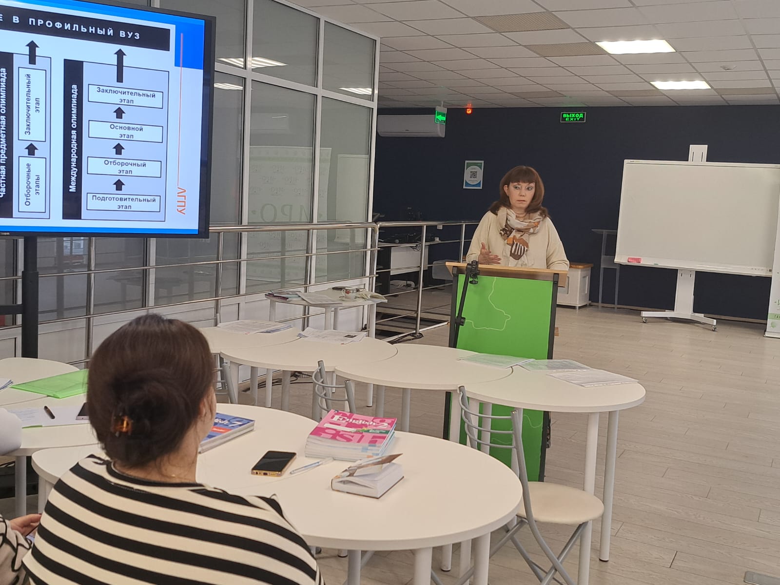 Слушатели курсов сами побывали в роли участников олимпиад: решали олимпиадные задания под руководством члена региональной предметно-методической комиссии всероссийской олимпиады школьников по английскому языку, кандидата педагогических наук Елены Алексеевны Стуровой (ЛГПИ), выявляли трудности, которые могут возникнуть у детей, находили решения по преодолению этих трудностей.