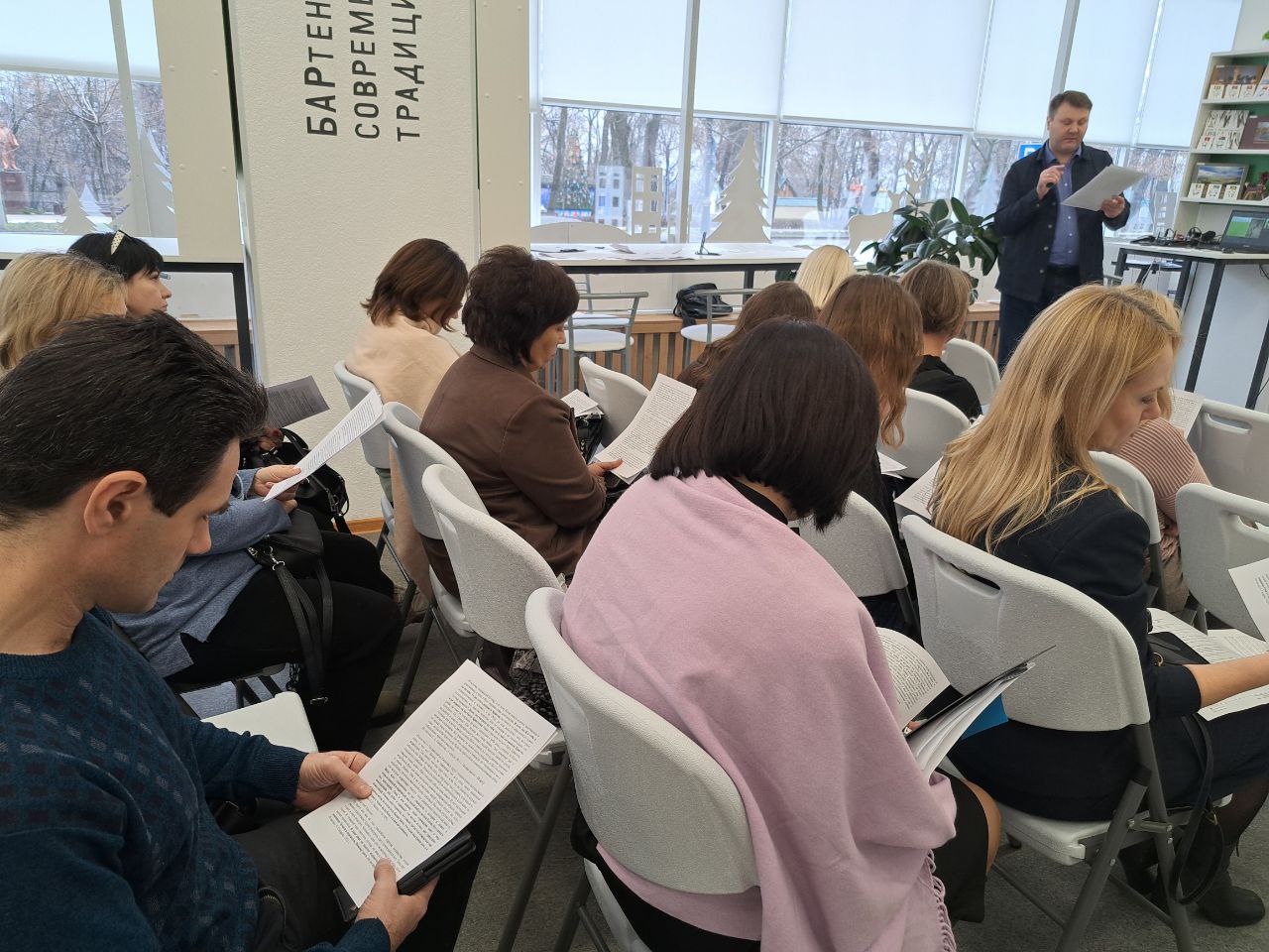 Возможности использования в системе образования библиотек нового поколения охарактеризовал Алексеев Никита Сергеевич, руководитель Библиотечно-информационного центра им. П.И. Бартенева Централизованной библиотечной системы г. Липецка. Ресурсы творческого кластера «БАРтеневка», модернизированного пространства в рамках национального проекта «Семья», для педагогов и обучающихся представила Двуреченская Татьяна Николаевна, главный библиотекарь библиотечно-информационного центра имени П.И. Бартенева в ходе интерактивной экскурсии.