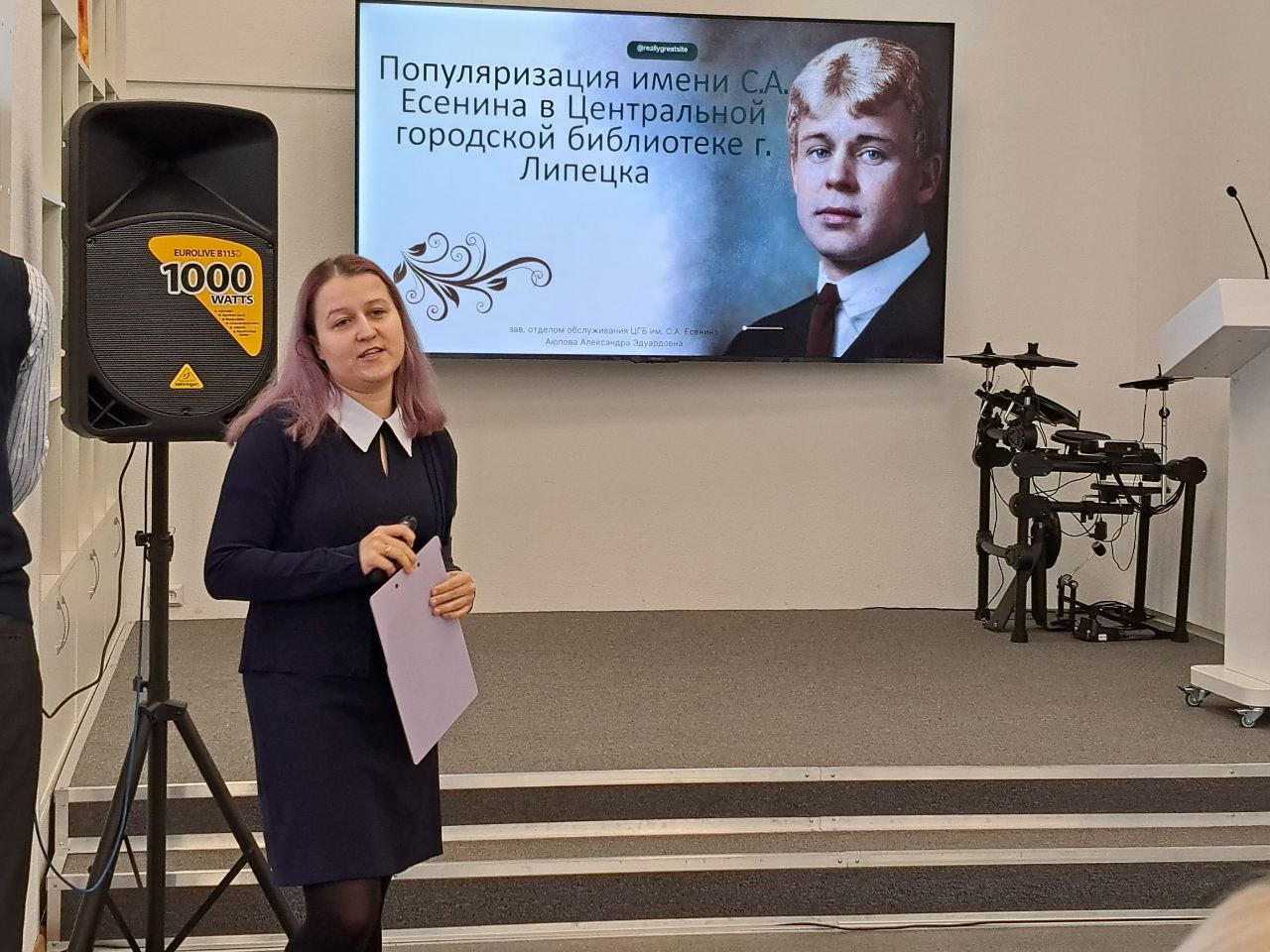 Включённость педагогов и обучающихся в популяризацию имени Сергея Александровича Есенина, осуществляемую Центральной городской библиотекой, подчеркнула Аюпова Александра Эдуардовна, заведующий Центральной городской библиотекой имени С.А. Есенина.