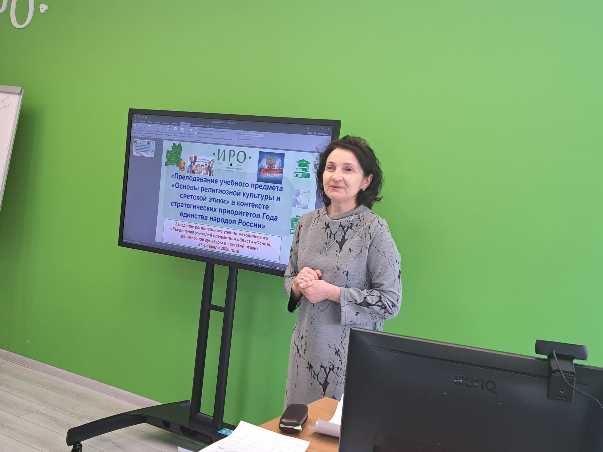 Чернова Елена Викторовна, председатель отделения регионального учебно-методического объединения, учитель учебного предмета «Основы религиозной культуры и светской этики» школы № 14 г. Липецка, представила план работы учебно-методического объединения на 2026 год. Елена Викторовна выступила с докладом о духовно-нравственном воспитании учащихся начального школьного звена средствами театральной сценической деятельности.