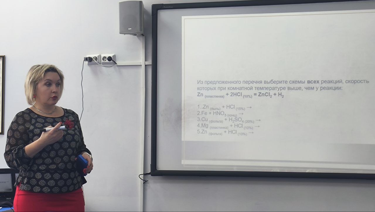 Занятие было направлено на повышение квалификации учителей химии путем обмена опытом и внедрения современных методик преподавания темы «Скорость химической реакции». Содержательная часть занятия была посвящена вопросам применения знаний   о   скорости   химической   реакции   в   решении конкретных экспериментальных   задач.