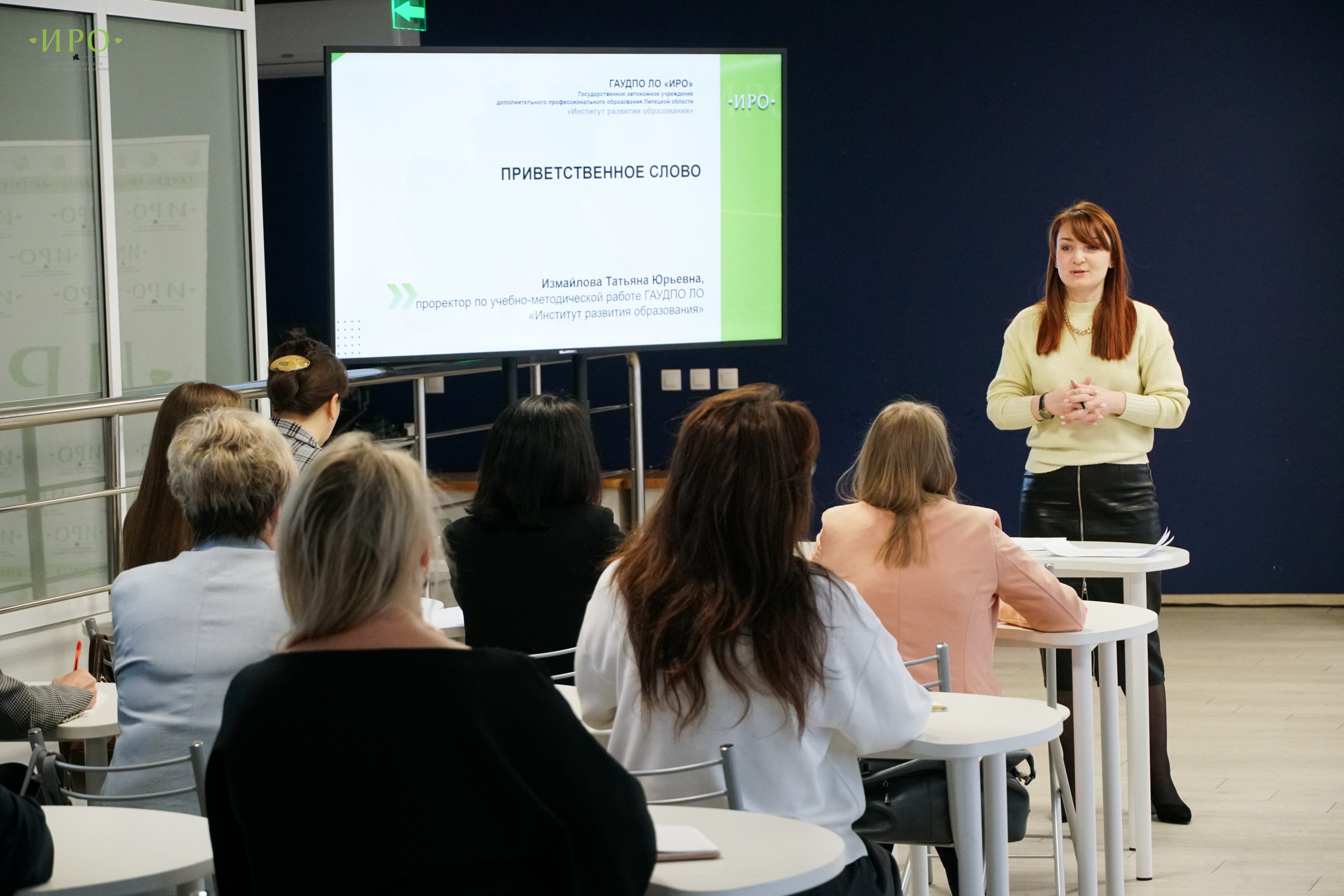 С приветственным словом к участникам конкурса обратилась Татьяна Измайлова, проректор по учебно-методической работе ГАУДПО ЛО «Институт развития образования». Татьяна Измайлова пригласила педагогов принять активное участие в региональном этапе Конкурса.