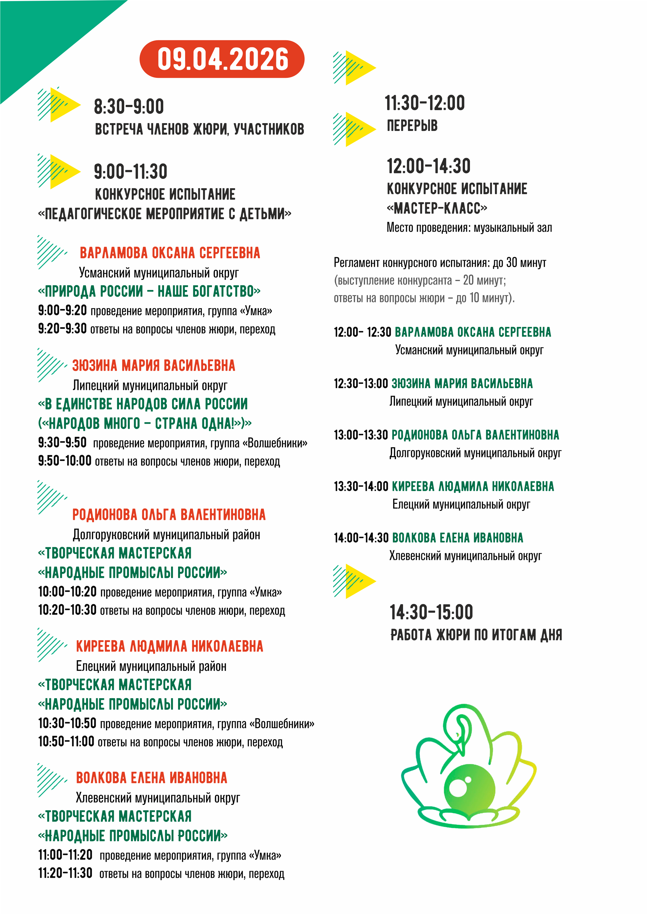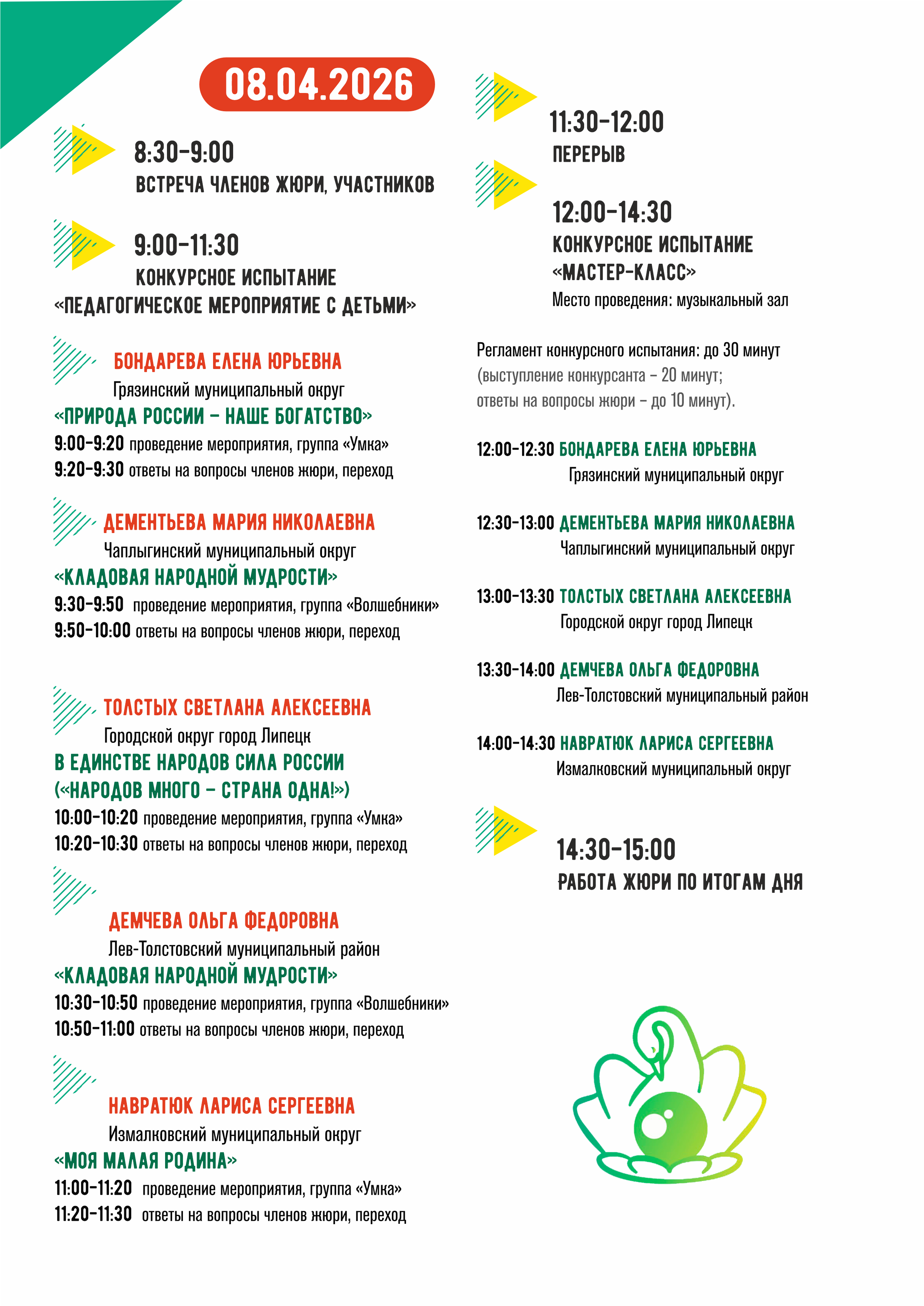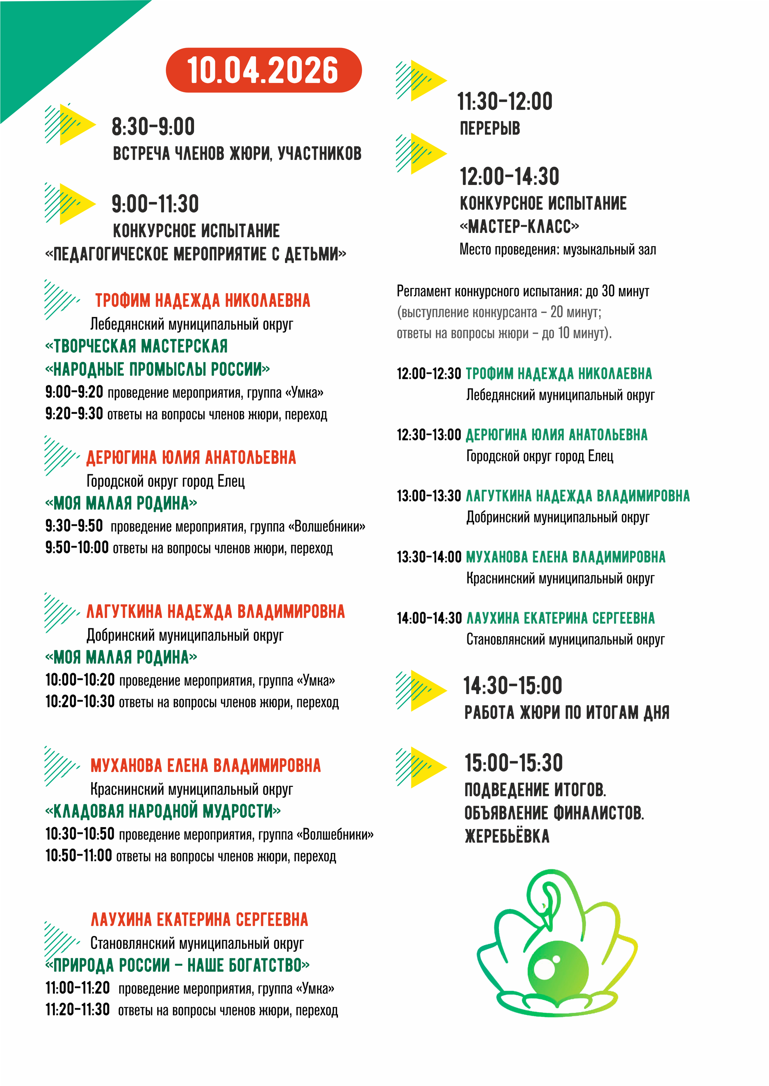 Даты проведения первого тура: 7-10 апреля 2026 года (очередность выступления конкурсантов определяется жеребьевкой, проводимой на установочном семинаре).